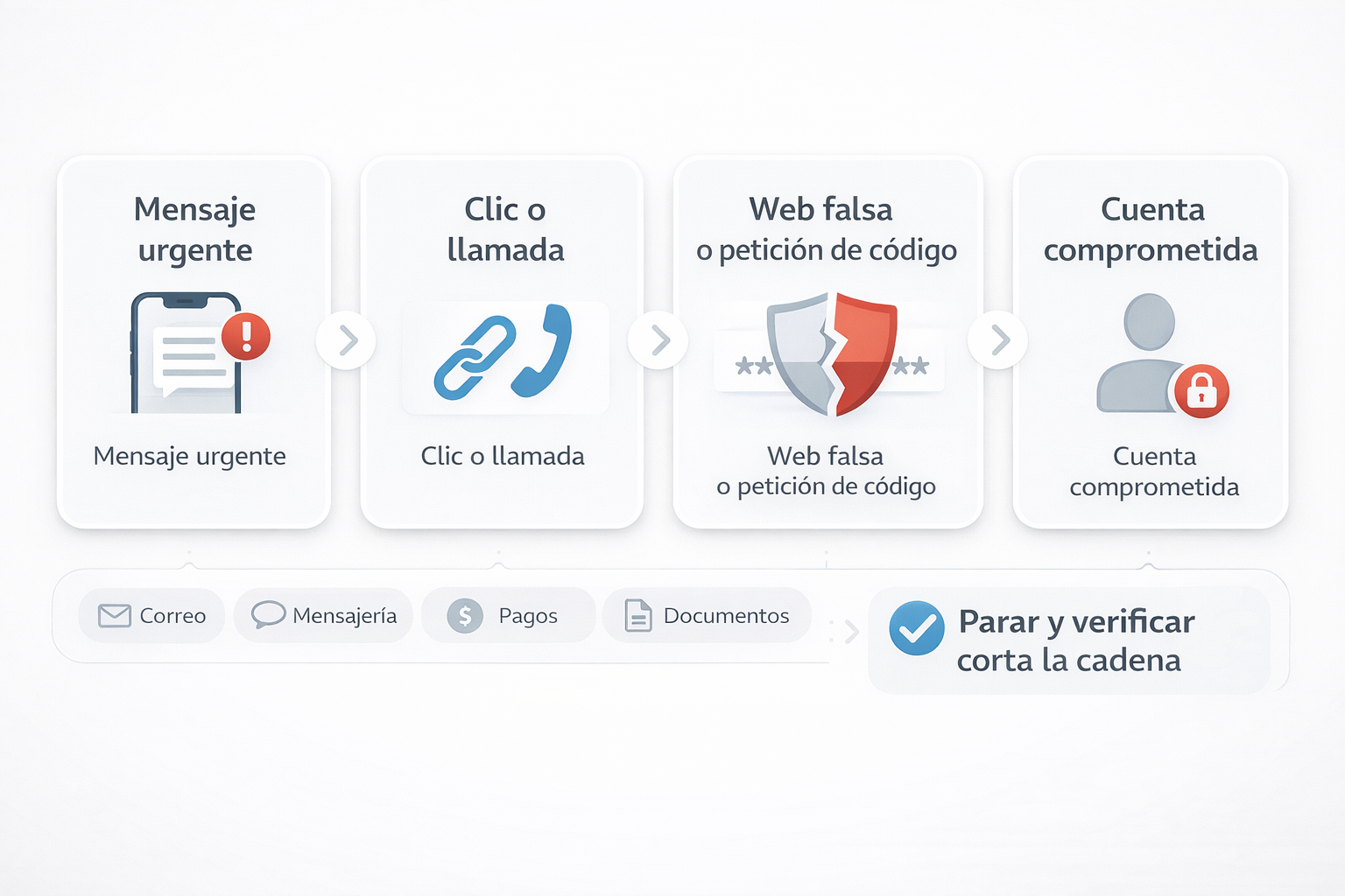 Y hay otra consecuencia menos visible. Cuando una cuenta cae, el problema puede expandirse por confianza. El atacante no solo busca lo que hay dentro; busca a quién más puede escribir desde ahí. Un mensaje enviado desde una cuenta conocida encuentra menos resistencia.
