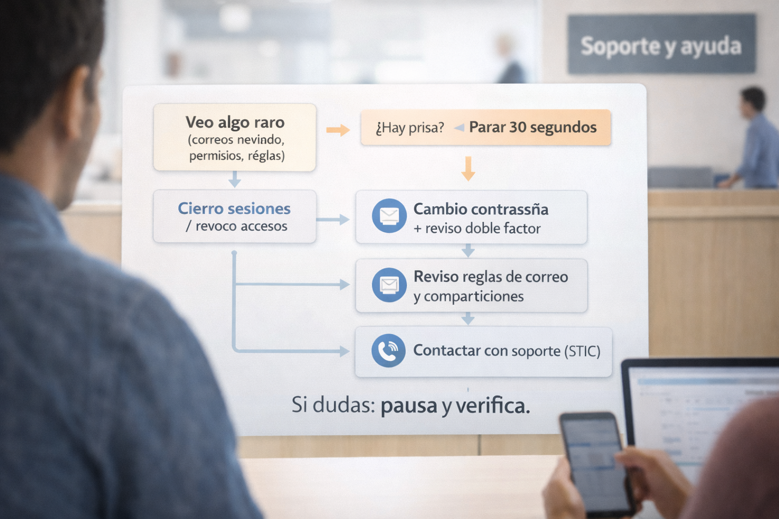 - Orientación inmediata: qué priorizar según lo que veas (correo, documentos, notificaciones, cambios de configuración).