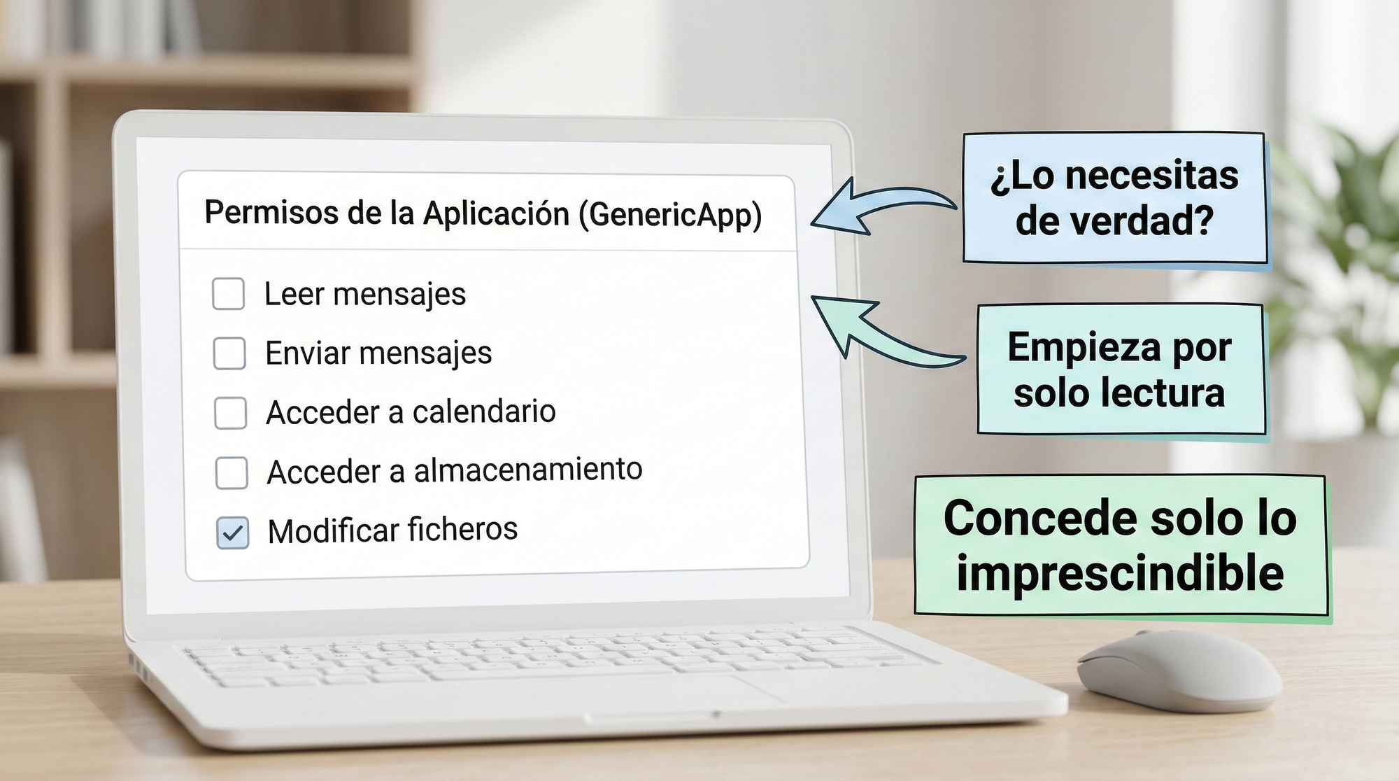 - Permisos demasiado amplios para el objetivo: si lo que quieres es “resumir un texto” y el asistente necesita acceso de escritura a tus carpetas, a tu correo y a un repositorio, hay un desajuste.