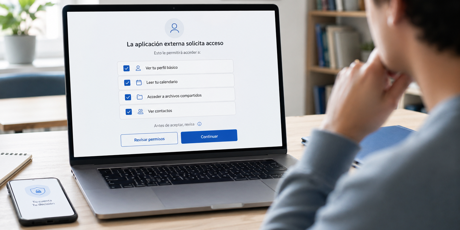 Cuando una herramienta ofrece entrar con Google o Microsoft, merece la pena dedicar unos segundos a leer antes de aceptar. No hace falta analizar cada detalle técnico, pero sí hacerse unas cuantas preguntas sencillas. Ese pequeño freno cambia mucho las cosas, porque ayuda a distinguir entre una integración razonable y una solicitud demasiado amplia para lo que la aplicación promete hacer.