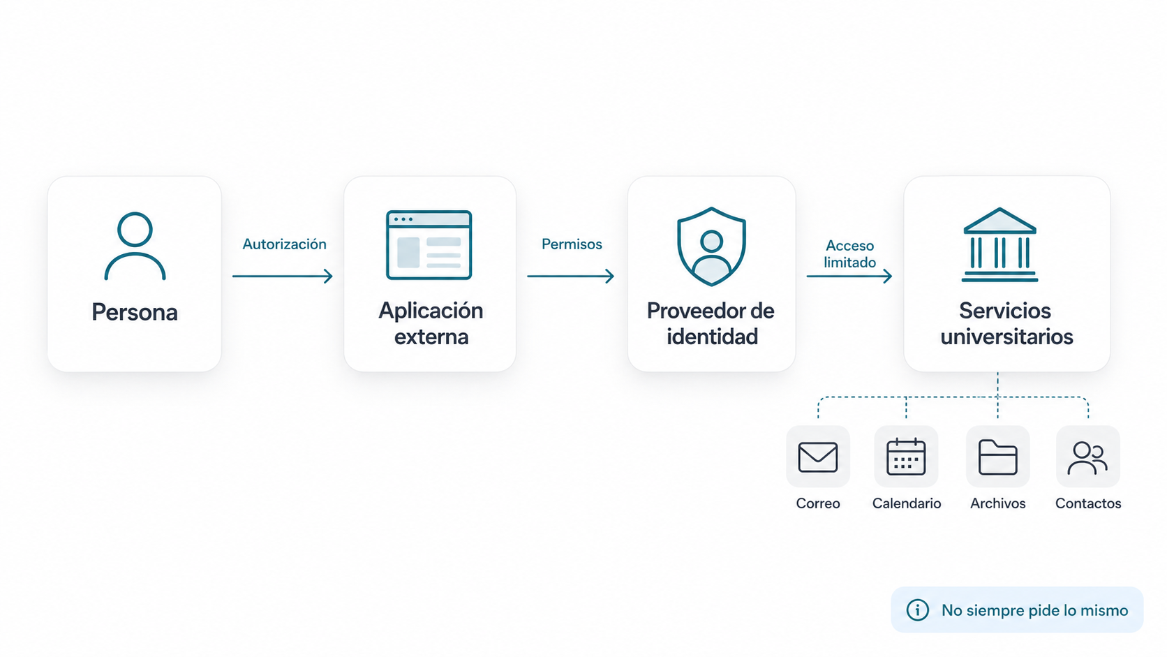 En la Universidad Pontificia Comillas, ese gesto no afecta solo a una cuenta aislada. Según el permiso que aceptemos, una aplicación puede ver datos del perfil, el correo, el calendario, los contactos o determinados ficheros en Drive, OneDrive o espacios compartidos. A veces el acceso es mínimo y razonable; otras, es más amplio de lo necesario para la función prometida. El riesgo, por tanto, ya no está solo en la contraseña: también está en el consentimiento que concedemos. [Google, 2026] [Microsoft, 2025]