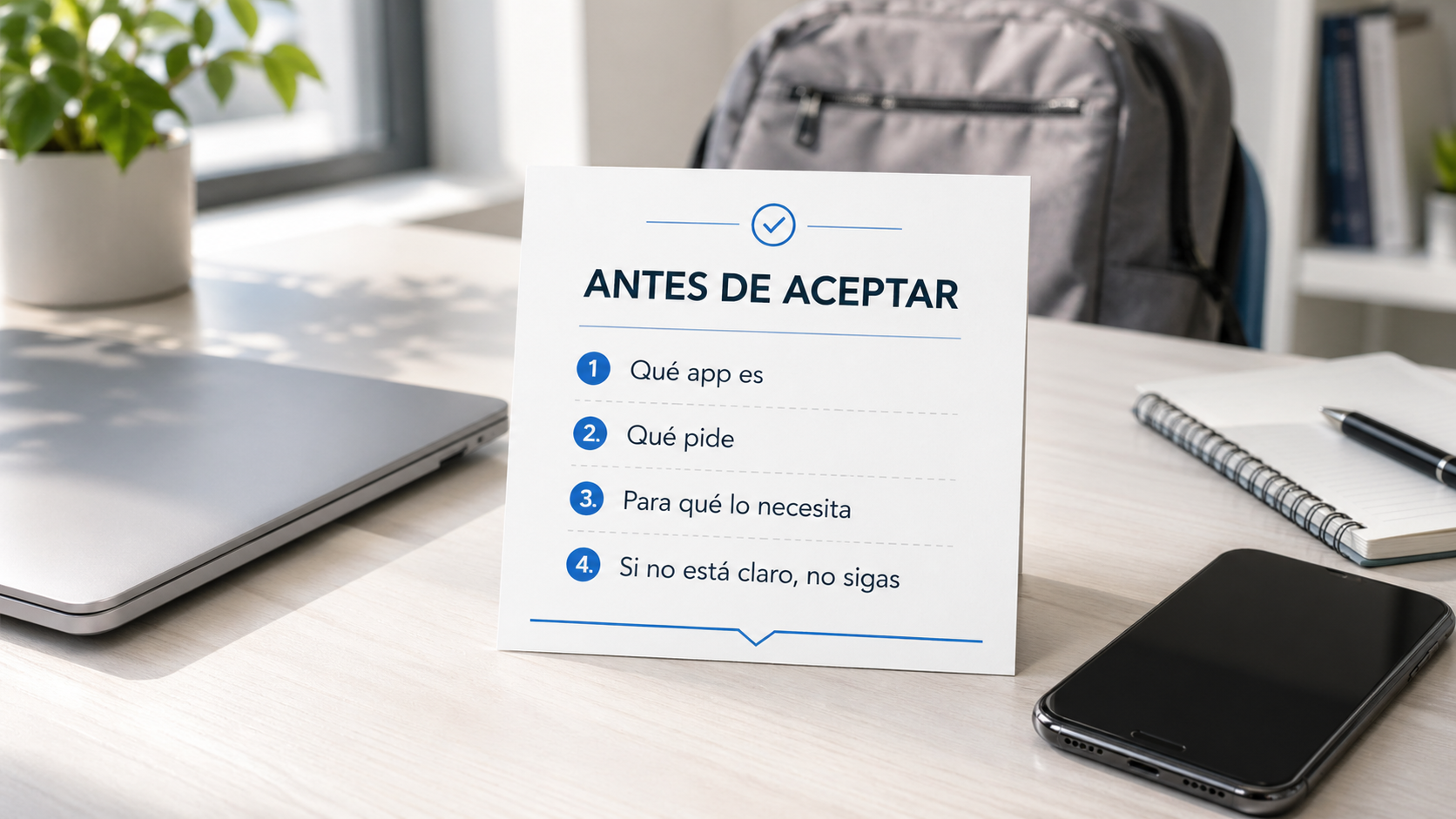 La buena noticia es que no hace falta ser especialista para reducir mucho el riesgo. Basta con cambiar el reflejo: antes de aceptar, mirar qué pide; antes de conectar, pensar para qué; y si algo no encaja, parar y consultar. En este tema, una pausa de diez segundos vale más que muchas correcciones después.